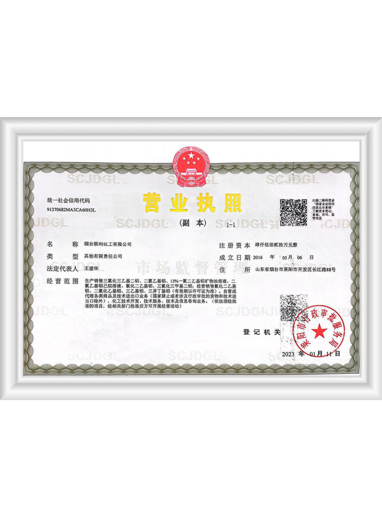 煙臺聯利化工有限公司成立于2016年5月,位于煙臺市萊陽經濟開發(fā)區(qū)長江路88號,公司前身為1988年北京燕山石化公司技術轉讓成立的煙臺燕德化工有限公司。